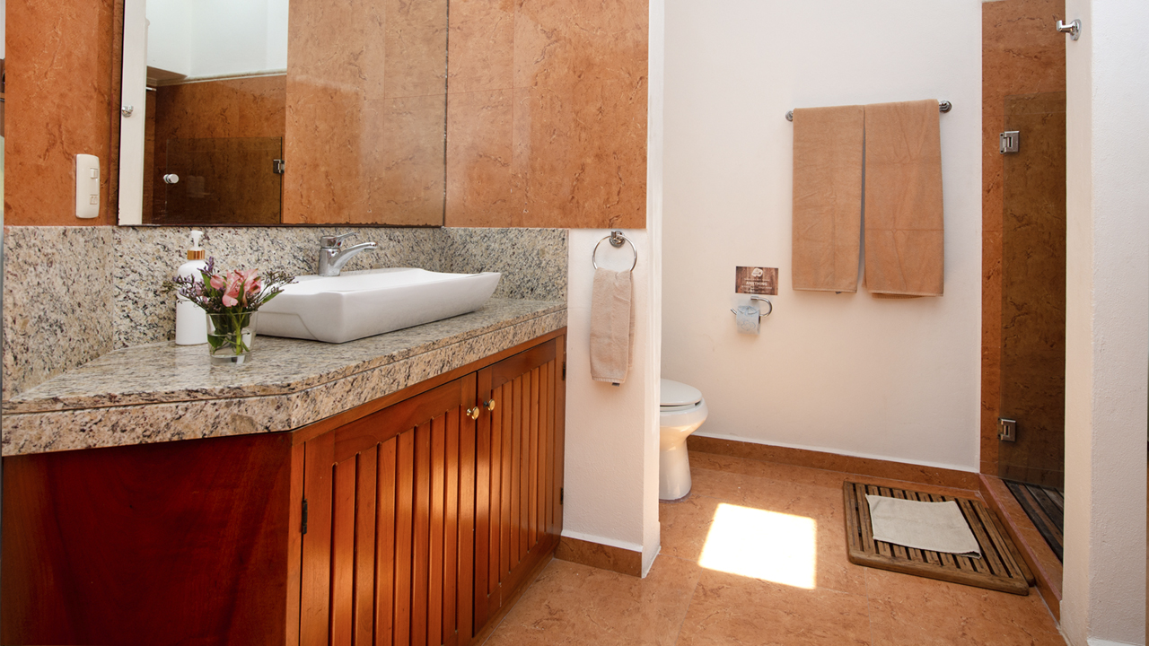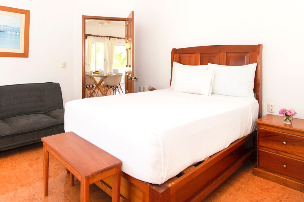 - b) Bedroom with 1 queen bed + 1 pull-out sofa and private bathroom
